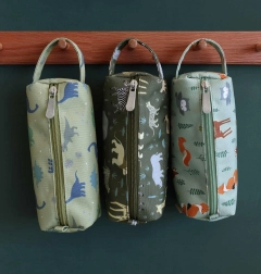 Elegante astuccio verde per matite con stampa di dinosauri in poliestere sostenibile. Pratica chiusura a zip, fodera interna e manico comodo tengono in sicurezza il materiale da scrittura a casa, a scuola e in viaggio.