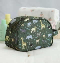 Beauty case per bambini elegante e pratico con motivi allegri di giraffa, zebra, leone e altri abitanti della savana. Grazie alle dimensioni compatte entra nello zaino o in valigia e mantiene tutte le necessità per l’igiene ben in ordine.