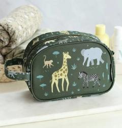 Il dolce beauty case per bambini A Little Lovely Company con motivo di animali della savana è ideale per gite, campi e vacanze. Offre un ampio scomparto principale, chiusura a zip e un comodo passante per un facile trasporto o per appenderlo. Mantiene insieme shampoo, sapone, spazzolino e dentifricio.