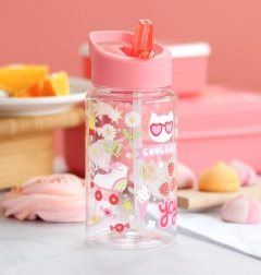 La bottiglia è realizzata in Tritan e polipropilene di alta qualità, materiali leggeri e resistenti. Per un look coordinato, potete abbinare l’intero set nello stesso design: bottiglia, zaino e portapranzo.