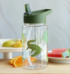 Questa bottiglia dal design giocoso con motivo di coccodrilli aiuta i bambini a rispettare il corretto apporto di liquidi. Grazie alla chiusura sicura e alla cannuccia, bere è confortevole e la bottiglia rimane senza perdite. Le pareti trasparenti consentono di controllare la quantità di liquido e le dimensioni compatte entrano in qualsiasi zainetto.