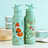 Elegante bottiglia A Little Lovely Company in acciaio inox da 500 ml con motivo di animaletti del bosco, dotata di isolamento a doppia parete per mantenere a lungo la temperatura, beccuccio pratico con cannuccia per bevande fredde e struttura resistente in acciaio inossidabile. Ideale per scuola, asilo e gite.