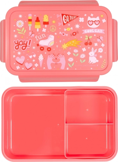 Adorabile scatola per la merenda in colore rosa corallo con motivo divertimento, ideale per la scuola e le gite. Ha un coperchio a scatto ermetico e un vassoio rimovibile con due scomparti per un’organizzazione ordinata della merenda. Leggera, resistente e pronta per pranzi variopinti che i bambini adorano.
