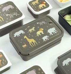 Questo pratico lunch box con motivo degli animali della savana farà felici bambini e genitori. Grazie all’affidabile coperchio a scatto, il contenuto non si rovescia e rimane fresco più a lungo. Il vassoio rimovibile con due scomparti consente di separare facilmente frutta, panino o snack.