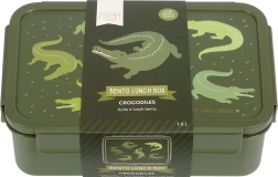 Pratica lunch box con stampa di coccodrilli, ideale per la scuola e le gite. Ha un coperchio a scatto ermetico e un contenitore estraibile con due scomparti, così gli snack restano freschi e ben organizzati per tutto il giorno.
