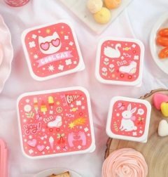 Scoprite il pratico set di 4 contenitori per snack di A Little Lovely Company che, grazie alle diverse dimensioni, coprono alla perfezione pranzo, frutta, verdura e piccoli spuntini. I contenitori hanno una grafica giocosa coordinata e possono essere annidati facilmente, occupando quasi zero spazio a casa.