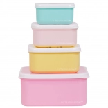 Pratico set di quattro contenitori per snack in quattro dimensioni con motivo a veicoli, perfetto per bambini e genitori. Le scatoline si aprono e chiudono facilmente, sono impilabili per risparmiare spazio e ideali per pranzo, merenda e piccoli spuntini. Ottima scelta per asilo, scuola e gite.