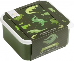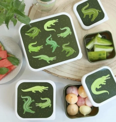 Pratico set di quattro contenitori per snack in diverse dimensioni con allegro motivo di coccodrilli. I contenitori si inseriscono comodamente uno nell’altro, si aprono e si chiudono facilmente, ideali per scuola, gite e per conservare in casa. Leggeri, resistenti, impilabili e con un design coordinato per un kit perfettamente abbinato.