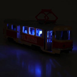 Scopri il divertente e dettagliato tram T3 a tema BRNO, che entusiasmerà piccoli e grandi appassionati del trasporto urbano. A ogni apertura delle porte si sente il vero annuncio delle fermate in lingua ceca, mentre alla chiusura il tram indica la fermata successiva. L'apertura delle porte anteriori attiva inoltre la luce interna blu, amplificando il realismo del gioco.