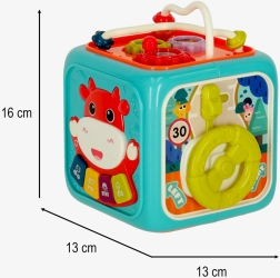 Il cubo educativo è perfetto per combinare gioco e apprendimento, stimolando l'udito e promuovendo una passione per la musica attraverso il suo pianoforte alimentato da batterie. È un'ottima soluzione per migliorare le abilità manuali ed intellettuali, garantendo momenti di gioia e apprendimento per i bambini. Il prodotto è confezionato in una scatola di cartone.