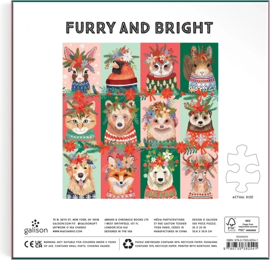 Un puzzle adorabile con un motivo invernale di amici animali in abiti festivi porta la giusta atmosfera in casa. Ha 500 pezzi, è realizzato in carta riciclata certificata FSC e stampato con inchiostri atossici. Nella confezione è inclusa un'immagine di riferimento. Ottima scelta per bambini e adulti e ideale come regalo di Natale.