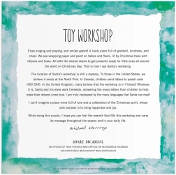 Scopri la magia del Natale in ogni pezzo. Il puzzle con effetto lamina Michael Storrings – Laboratorio di giocattoli natalizio offre una ricca illustrazione colorata con riflessi luccicanti in lamina che, da diverse angolazioni, creano un effetto di oro e argento. L’assemblaggio è divertente, scorrevole e l’immagine finale diventa una decorazione invernale di stile per il soggiorno o l’ufficio.