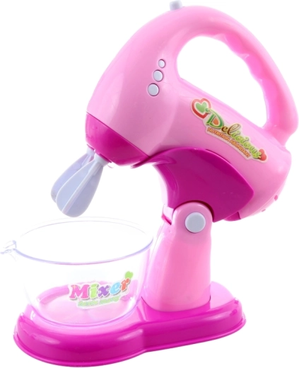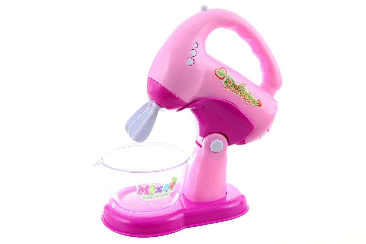 Il mixer manuale con frusta e ciotola ruota, si illumina e emette suoni. I bambini possono “montare” creme e impasti come in una vera cucina.