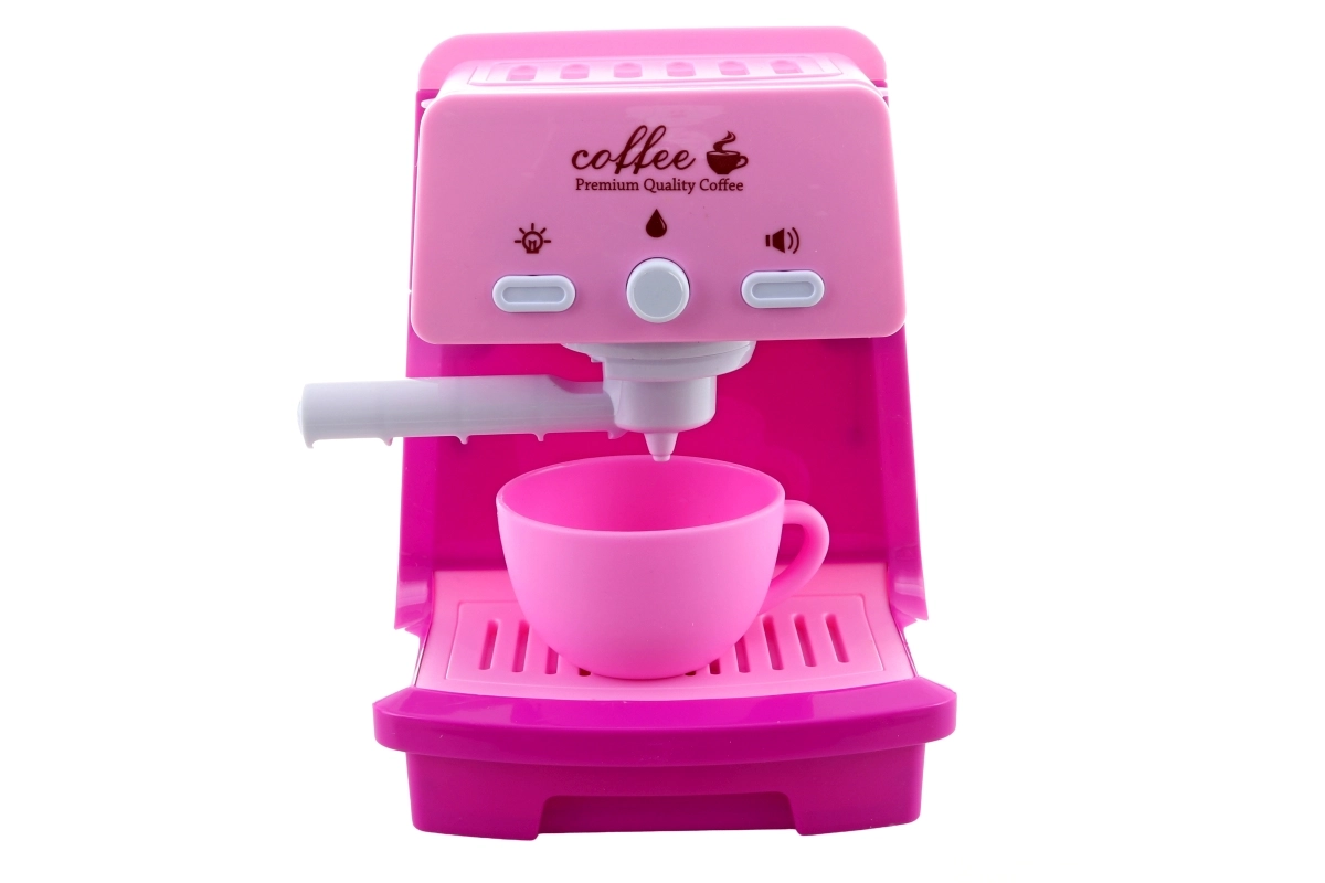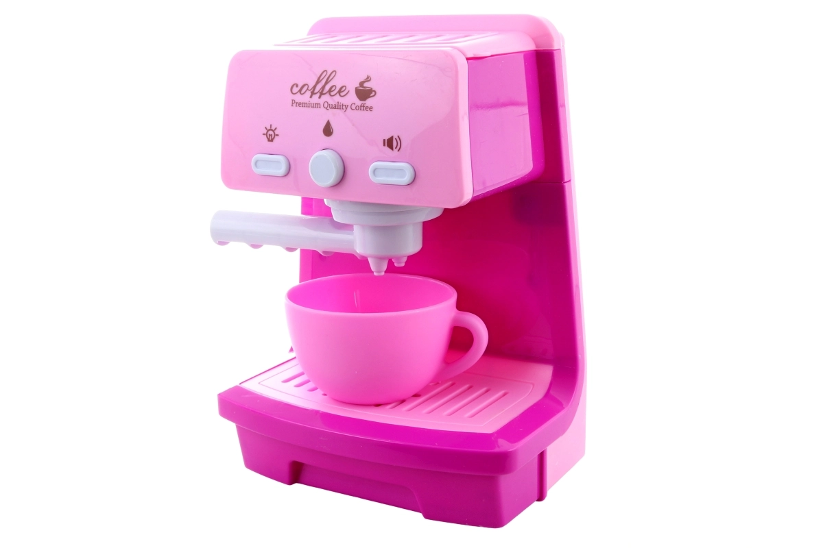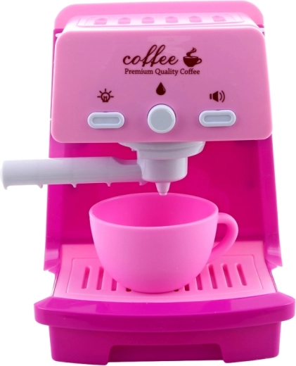 Macchina da caffè per bambini con effetti luminosi e sonori, portafiltro e tazzina. È possibile versare l’acqua nel serbatoio e pomparla manualmente – come nella vera preparazione dell’espresso.