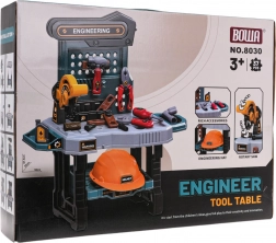 Il set include 37 pezzi, inclusi elmetto, sega circolare e molti altri strumenti, che sembrano veri.