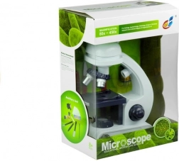 Il dispositivo presentato sarà un ottimo aiuto per conoscere la natura e la biologia. Gli accessori inclusi nel set garantiscono un gioco riuscito e soprattutto stimolante. La costruzione del giocattolo consente l’uso sia della luce diurna sia della luce integrata nel microscopio. La parte superiore del microscopio ruota di 360 gradi, mentre nell’impugnatura sono presenti tre obiettivi con ingrandimenti 80x, 200x e 450x. Nella parte anteriore del tavolino è collocato un disco rotante con quattro filtri che modificano il colore dei preparati. Un’altra caratteristica interessante del giocattolo è l’ingrandimento regolabile del cannocchiale.