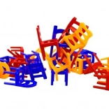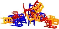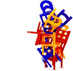 .Ogni giocatore impila a turno una sedia sull’altra in modo che la torre non crolli. Impila le sedie colorate una sull’altra e crea la torre più alta possibile. Chi non riesce a mantenere stabile la piramide in piedi perde. Non è consentito toccare o spostare le sedie già impilate. La torre può essere costruita in più persone o da soli.