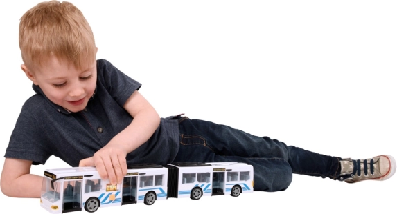 Questo autobus è grande 46 cm ed è un perfetto completamento per la collezione di mezzi di trasporto di un bambino. La confezione include 2 batterie LR44 / AG13 necessarie per il funzionamento delle funzioni dell'autobus.