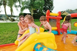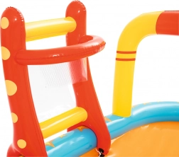 - Divertimento multifunzionale – scivolo, birilli, anelli, canestro, elemento spruzzante.