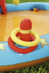 La ricca dotazione, che include birilli, anelli gonfiabili, palline e canestro, supporta diverse attività e sviluppa coordinazione e motricità. I genitori apprezzeranno lo svuotamento facile grazie alla valvola di scarico e la manutenzione semplice. Perfetto per pomeriggi di gioco con gli amici e momenti di festa in famiglia.