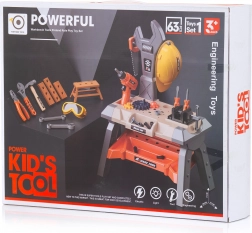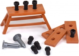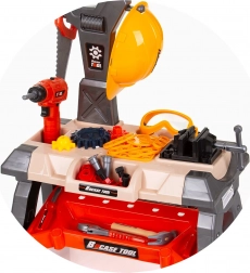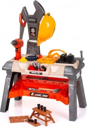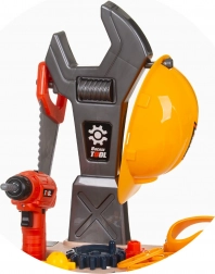 Il set include un banco con vani portaoggetti, un casco e una vasta selezione di attrezzi, tra cui trapano e cacciaviti. Durante il gioco i bambini allenano la coordinazione occhio–mano, imparano la pazienza e le basi dell'organizzazione del lavoro. Il prodotto è conforme alle norme europee di sicurezza per i giocattoli.