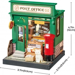 La miniatura contiene elementi precisi e dettagliati: dalla macchina da scrivere, alle buste per posta aerea, fino al piccolo gattino. È realizzata in legno, plastica e carta, conferendo al modello un aspetto realistico. Presenta una difficoltà di montaggio bassa ed è adatta agli appassionati dai 14 anni in su.