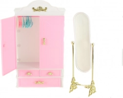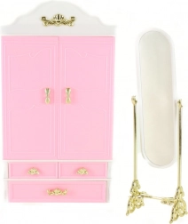 Include nel tuo gioco per bambini l'armadio e lo specchio Glorie, che arrivano con un design chiaro e funzionalità per le sue bambole. I bambini possono divertirsi a sistemare i vestiti con la giusta cura grazie alle grucce pratiche, mentre lo specchio aggiunge un tocco di eleganza alla loro scena di gioco.