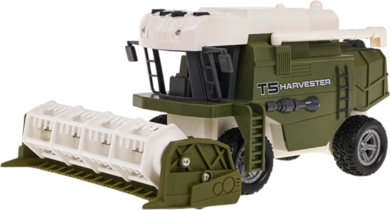 Grazie alla cura dei dettagli, la mietitrebbia sembra vera, inclusi grandi ruote di gomma con trazione posteriore.