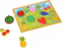 - Abilità motorie fini: I bambini devono abbinare ogni pezzo di frutta ai fori corrispondenti sulla tavola.