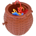 Il cesto di plastica con coperchio è ottimo non solo per il gioco, ma anche come spazio di archiviazione per le scimmiette una volta finito il gioco.