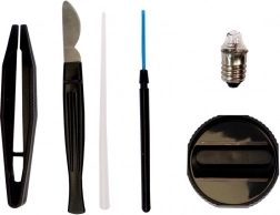 Il microscopio è alimentato da due batterie AA 1,5 V (non incluse). Questo giocattolo è adatto a bambini di età superiore a 8 anni. Il microscopio è certificato CE e conforme alla norma EN 71. È confezionato in una scatola di cartone con finestra trasparente, ideale come articolo regalo.