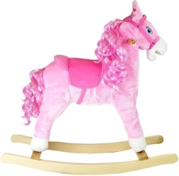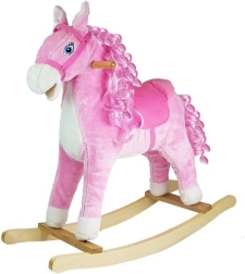 Scoprite il fascino del gioco classico in una versione moderna. Questo cavallo a dondolo rosa è realizzato in morbido peluche per una cavalcata confortevole e poggia su stabili pattini in legno. Grazie alla sella ergonomica con staffili e ai solidi appigli in legno, la guida è sicura e divertente.