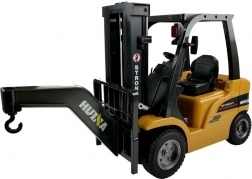 Il carrello elevatore radiocomandato proposto è decisamente una macchina performante. Il veicolo, con una livrea da lavoro, presenta numerosi elementi neri che gli conferiscono un carattere deciso. Grazie alla perfetta riproduzione degli elementi costruttivi, potete presentarlo senza timore accanto al suo originale. Il carrello elevatore arriva corredato di due pallet-giocattolo per il trasporto delle merci. Oltre alla funzione di "carrello elevatore", il mezzo dispone di un gancio intercambiabile, grazie al quale può funzionare come argano. Il radiocomando per la gestione del veicolo è dotato di ampie manopole di controllo, così da poter essere utilizzato comodamente da persone con mani di dimensioni diverse. Il carrello elevatore è alimentato da una capiente batteria ricaricabile da 7,2 V, che garantisce un gioco lungo e senza problemi. Il radiocomando è alimentato da quattro batterie AA – non incluse nella confezione.