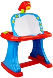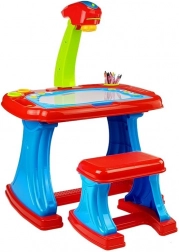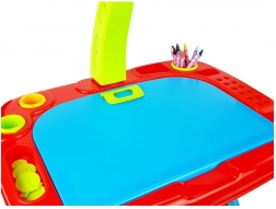 Con questo tavolino educativo i bambini possono sviluppare le loro abilità artistiche e creatività. Il tavolo è dotato di un proiettore che proietta diverse forme per il disegno e lettere e numeri magnetici per l'apprendimento.