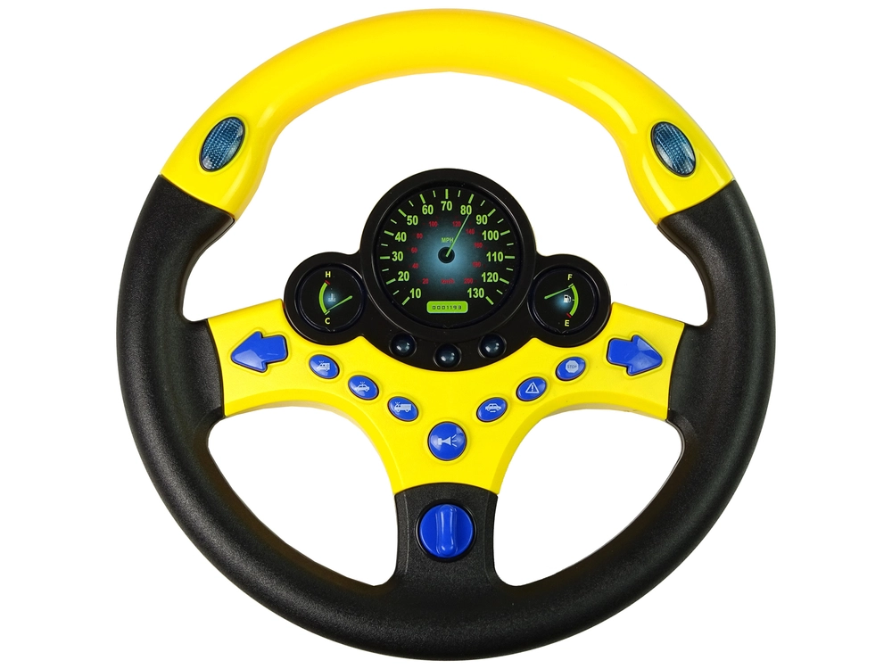Il volante è di colore giallo e nero. Ha in totale nove pulsanti, inclusi due indicatori di direzione, il clacson e i segnali di emergenza. Basta girare la chiave di avviamento e il gioco può iniziare! Il quadrante sul volante si illumina di blu. Grazie all’aspetto e ai LED, il tuo bambino avrà la sensazione di essere su una vera strada e di guidare la propria auto. Il volante si adatta perfettamente alle mani del tuo bambino. È ora che il tuo bambino simuli la guida.