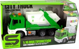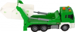 Questo set di camion dei rifiuti verde, ricco di dettagli, farà felice ogni bambino appassionato dei mezzi di nettezza urbana. Il meccanismo a frizione sull’asse posteriore garantisce una corsa scattante: basta dare una spinta e il camion parte. Il contenitore apribile consente di svuotare i rifiuti nel posto giusto e, grazie alla “pompa”, l’intero cassone può essere sollevato verso il retro.