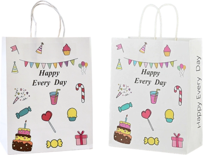 Questa borsa di carta è decorata con grafiche colorate e la scritta "Happy Every Day", rendendola adatta a un'ampia gamma di festeggiamenti, come compleanni, feste o incontri con i propri cari.