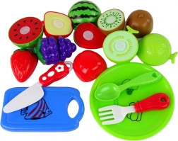 Set bambini di frutta e utensili da cucina è ideale per i piccoli chef che vogliono esplorare il mondo della cucina. Il set comprende frutta di plastica con taglio di sicurezza, un piattino, un tagliere e posate.