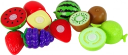 Frutta di plastica come fragola, kiwi, melone e altre in colori vivaci - facili da dividere con un coltello.