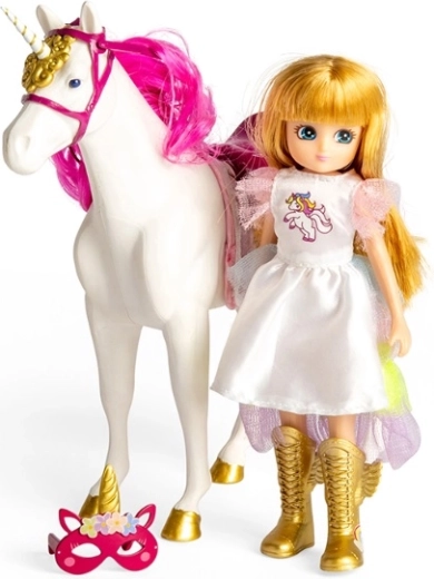 Accessori inclusi: scarpe dorate e maschera con corno di unicorno. Lottie arriva in un imballaggio ecologico facile da aprire e riutilizzabile.