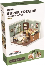 La miniatura Dolceria è ideale se cerchi un riposo stiloso in un ambiente con un'atmosfera d’antiquariato, dove non manca un tavolino rotondo con tovaglia in pizzo, tazze e piattini pieni di dolci. Montaggio semplice senza colla è supportato da pezzi tagliati con precisione che si incastrano facilmente.