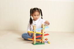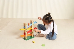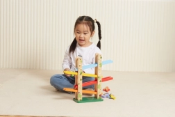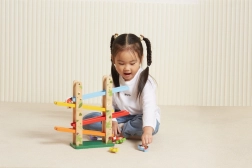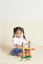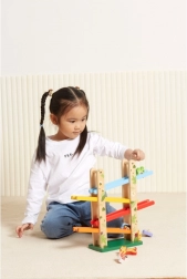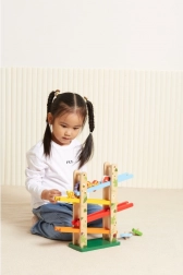 La pista in legno favorisce il gioco interattivo e migliora la coordinazione dei movimenti.