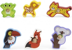 La confezione include sei figurine di animali in legno che sviluppano l'immaginazione e le abilità motorie.