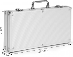 Il set è fornito in una valigetta metallica resistente, rendendolo ideale per il trasporto. La valigetta è bloccabile (include due chiavi), prevenendo aperture accidentali e dispersione di elementi di gioco.
