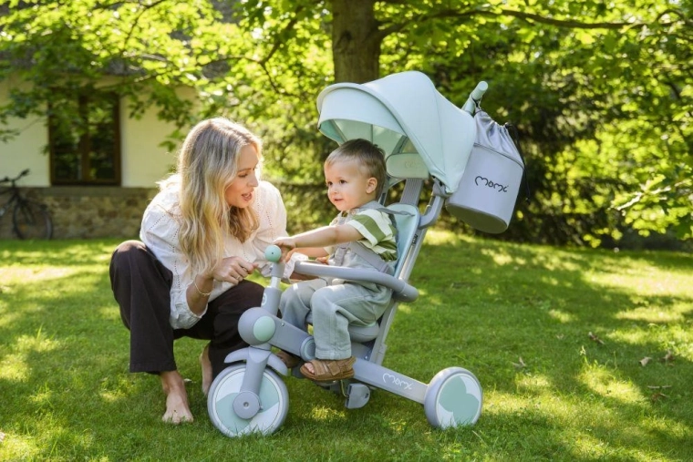 Il triciclo MoMi Solivia è progettato come un veicolo multifunzionale per bambini. La sua costruzione permette di smontare facilmente alcune parti, rendendo il triciclo un'alternativa al passeggino. I genitori possono guidare la corsa mentre i bambini si divertono.