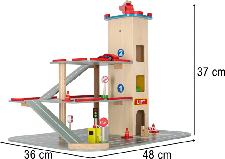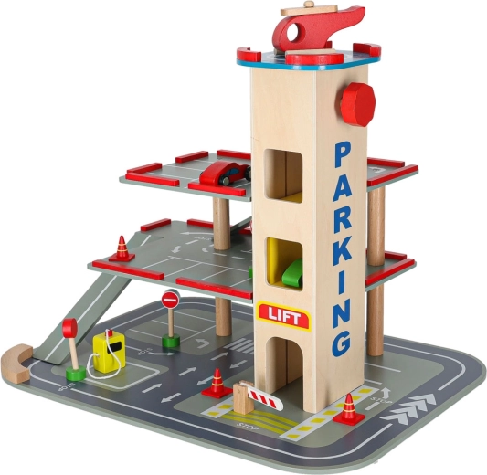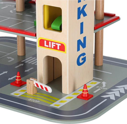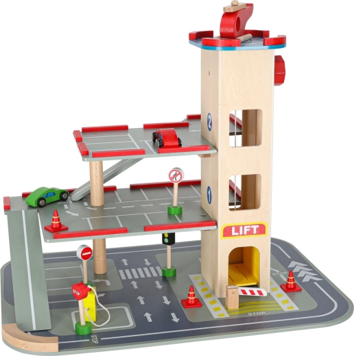 Questo garage in legno di qualità offre fino a 4 livelli di divertimento: tre piani per il parcheggio e un eliporto sul tetto. Grazie all’ascensore azionato a mano i bambini spostano facilmente le macchinine tra i piani e possono usare anche le rampe scorrevoli. Il set è ideale per sviluppare motricità fine, fantasia e per imparare le regole del codice della strada.