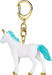 Questo portachiavi MOJO a forma di unicorno unisce funzionalità e design giocoso. La figurina bianca con criniera e coda turchese è arricchita da corno, zoccoli e finiture dorate, per un look elegante e resistente. Grazie al PVC di qualità senza ftalati e alla meticolosa pittura a mano, si distingue per dettagli realistici e lunga durata.