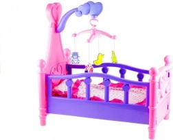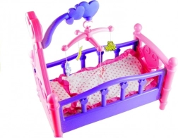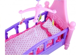Grande culla per bambole con giostrina e biancheria da letto