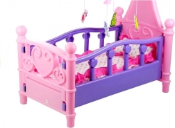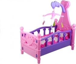 Deliziosa culla per bambole nei toni rosa‑viola con giostrina girevole e morbidi piumino e cuscino che farà felice ogni piccola mamma. La struttura in plastica sicura senza spigoli vivi, il facile montaggio e i cuoricini decorativi rendono la culla un bellissimo complemento per la cameretta. Ideale per giocare a prendersi cura e addormentare le bambole.