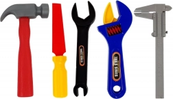 Il set include strumenti realizzati in plastica sicura e resistente in colori vivaci che imitano oggetti reali.